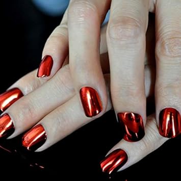 Amazon Com Metallic Mirror Fake Nails Normal Light Pink Ladies