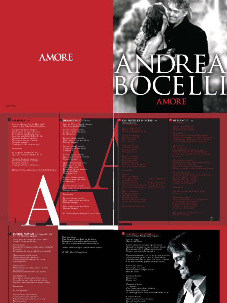 Andrea Bocelli Amore Lyrics And Tracklist Genius